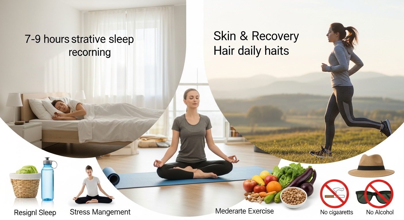 Without a healthy lifestyle, no activity can ever make routines, boosters and nutrition effective. The factor of daily habits is extremely critical when it comes to the rate of skin and hair healing.