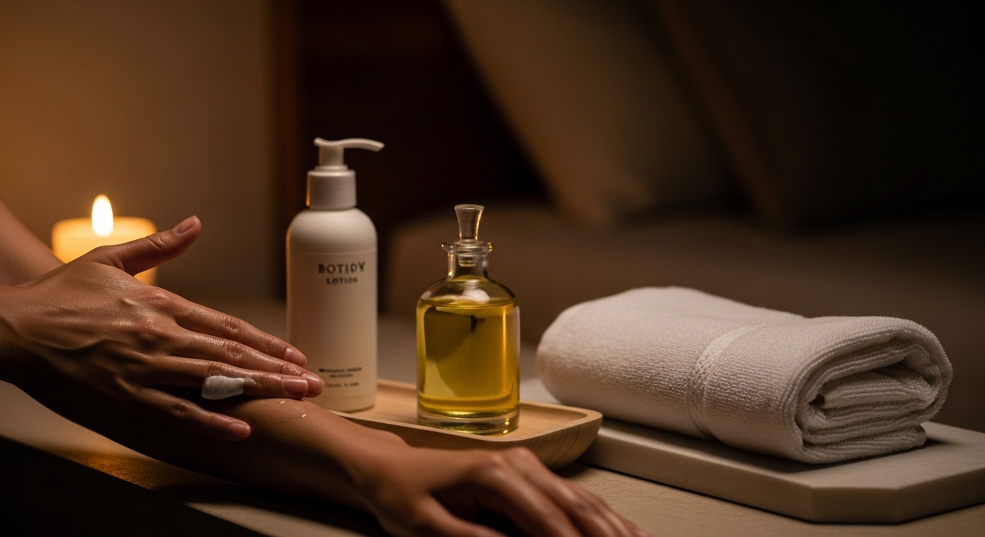 Calming Nighttime Body Care leverages slow touch, warmth, and consistent rituals to signal to your nervous system that it is safe to unwind. Repetitive nighttime behaviors develop predictive signals to the physiology and decrease physiological arousal reactions, as well as facilitate a transition to sleep. The routine serves as a psychological and physical point of rest.