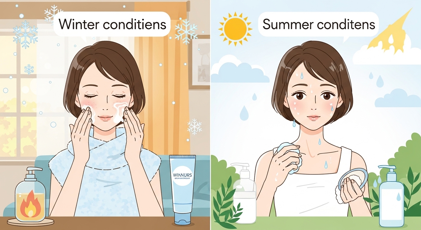 Sweat and oil are boosted by hot climate. Pores clog more easily. Minimal modification can be needed in cleansing. The exfoliation may be permitted to ascend but sparingly. The excess also damages even in oily conditions.