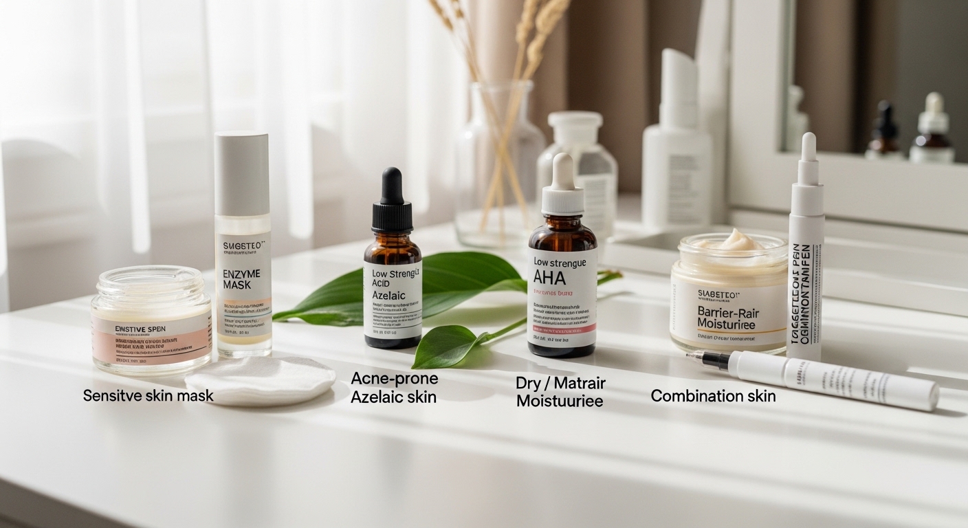 Use PHAs or enzyme masks. Avoid fragrance-heavy products.