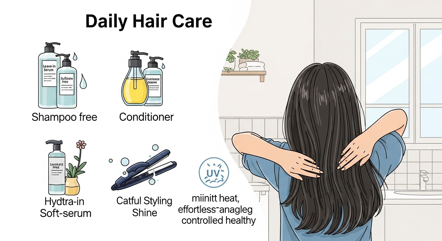 Hair will still be exposed to environmental stress even after applying keratin treatment. The use of leave-in serums or light oils will provide an additional barrier of protection against heat styling, UV and pollution.