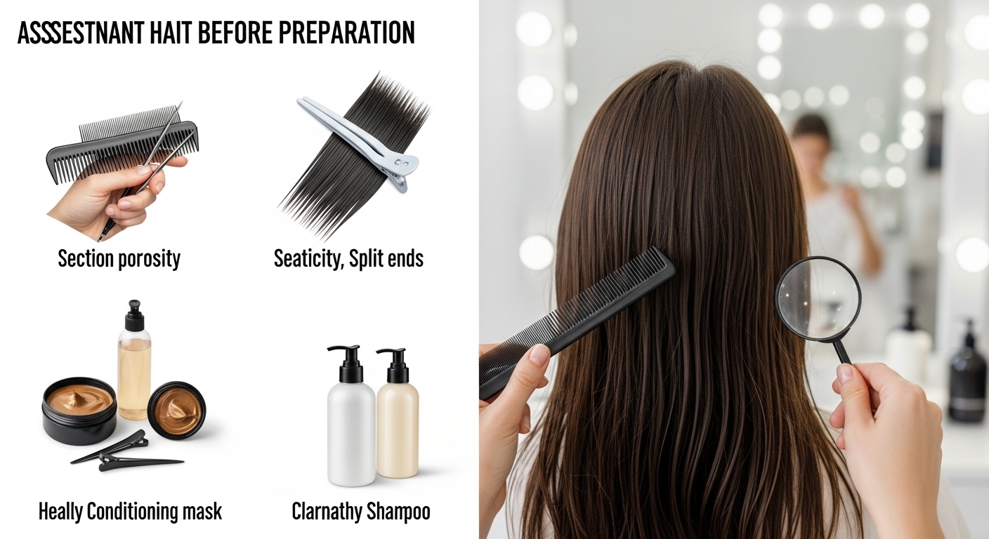 The way to start preparing is by doing a blunt evaluation of your hair. An analysis of its porosity, elasticity and health in general would show how well it can absorb keratin. Very porous hair is easier to absorb protein yet it may need extra conditioning in order to avoid brittle.