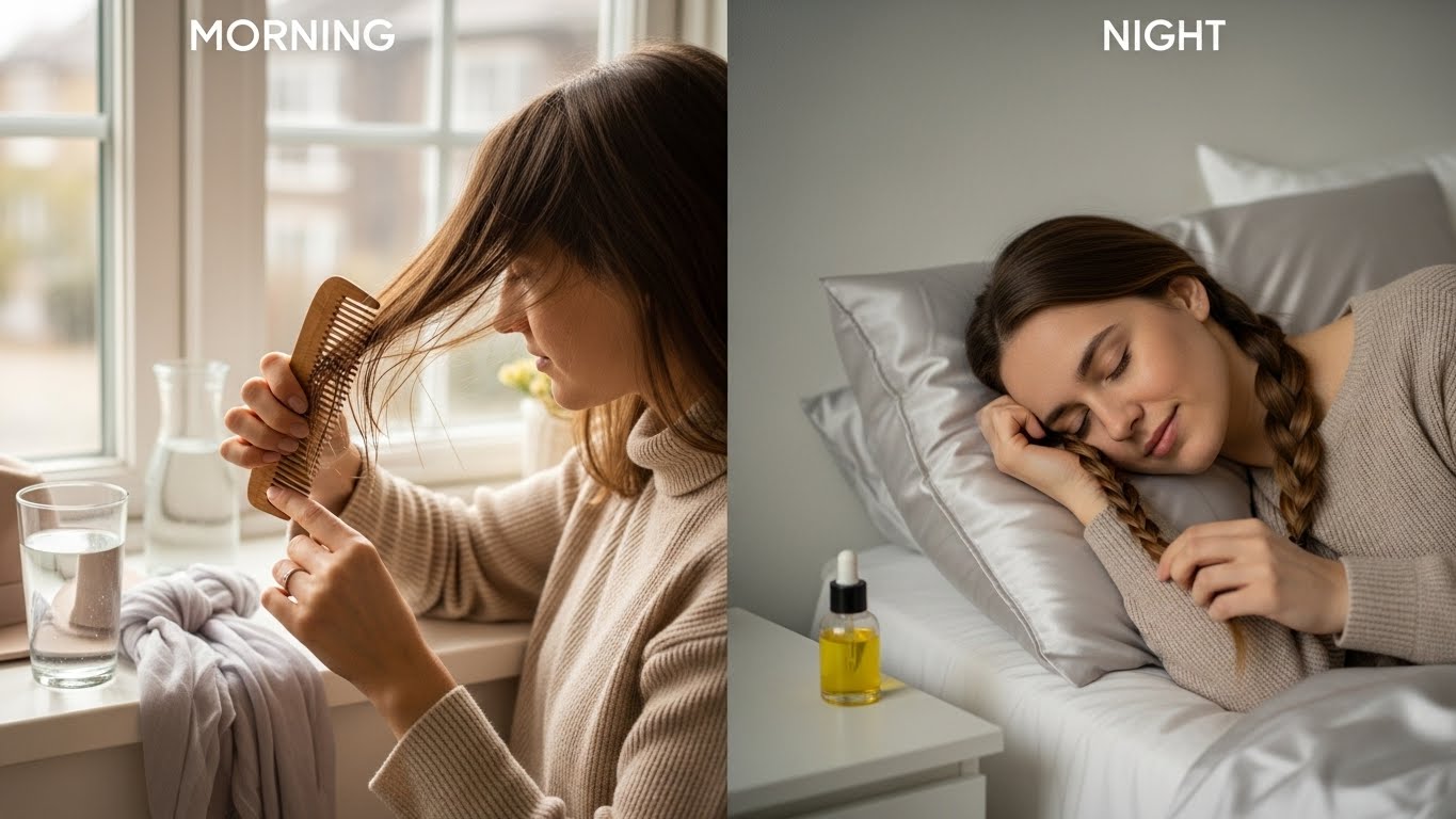 Even a five minutes massage before sleeping improves the blood flow to the hair follicles by scalp massage. These tiny rituals when performed regularly, contribute a score in strengthening the hair and its growth as well.
