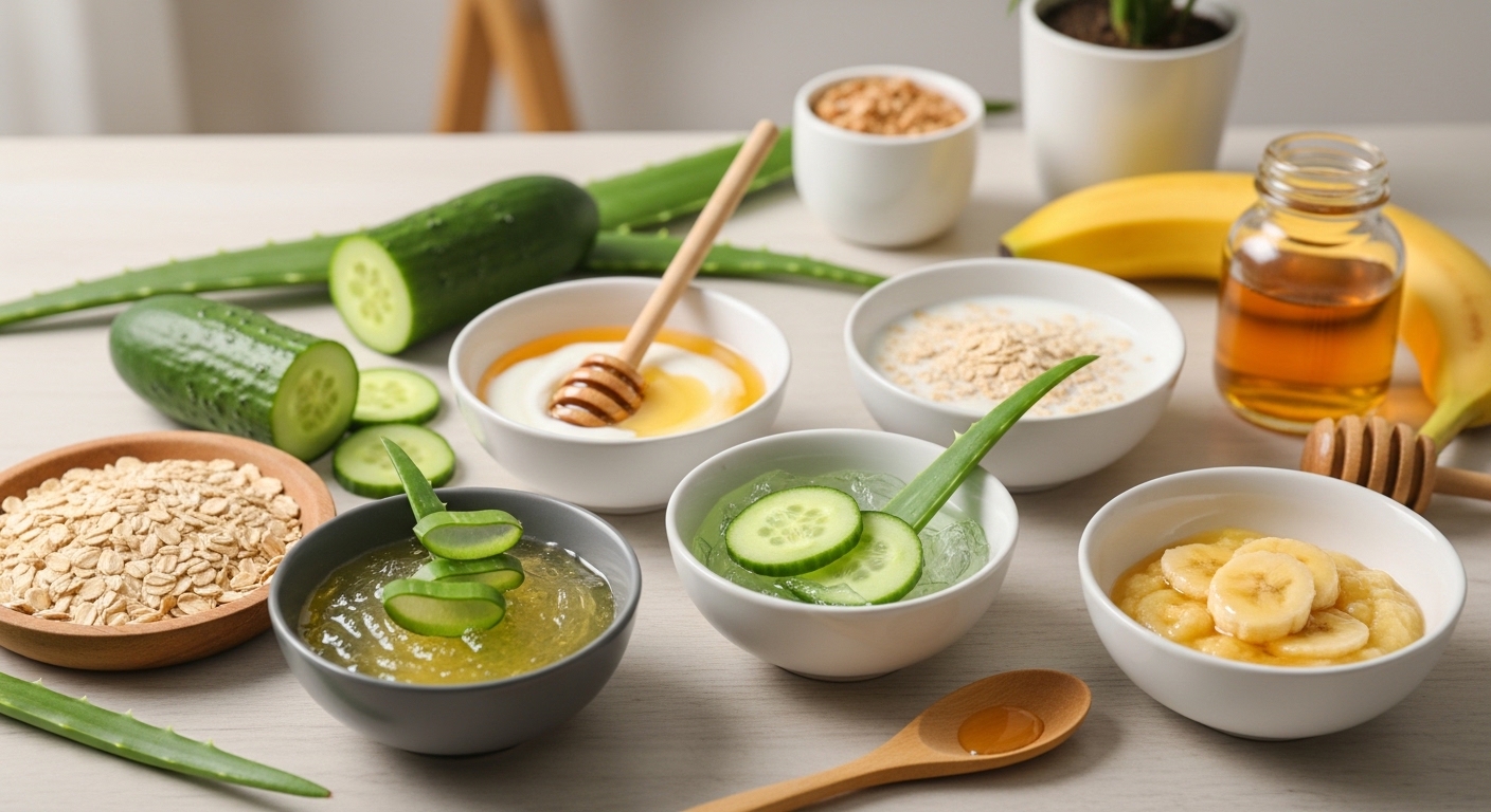 Yes. Ingredients such as aloe vera, honey, oatmeal, and yogurt can help soothe, hydrate, and gently exfoliate the skin.
