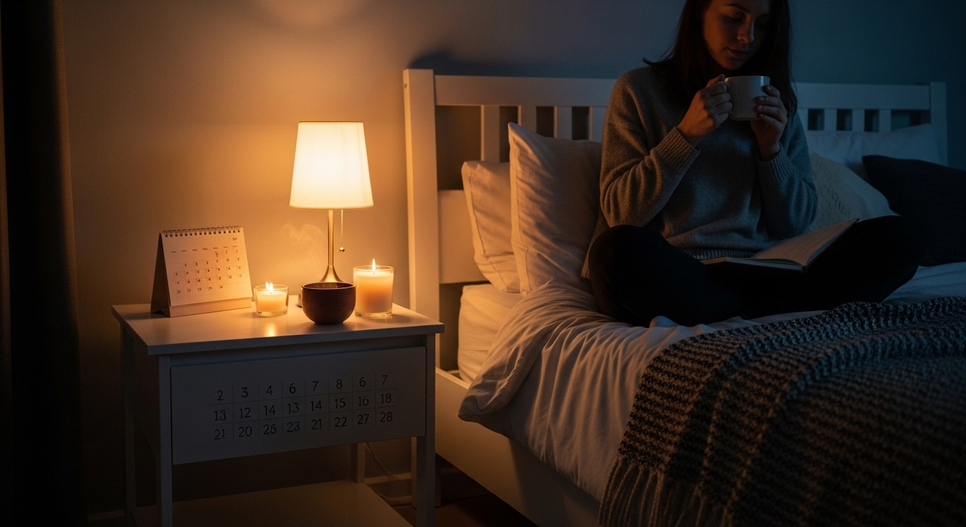 Begin by choosing two or three calming actions you can repeat most nights without effort. This might include washing your face slowly, stretching for a few minutes, writing down a couple of thoughts, sipping a warm drink, or sitting quietly and focusing on your breath. These actions don’t need to be impressive or time-consuming. Their purpose is to gently signal to your mind and body that the day is coming to an end.